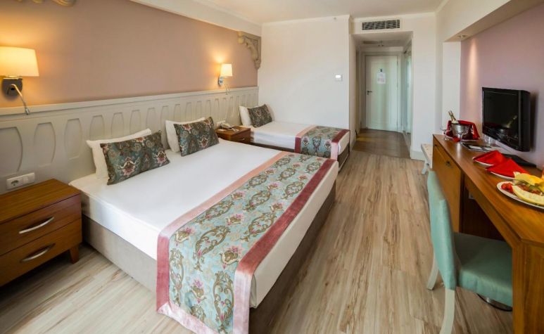 Основен ресторант, 2 а-ла-карт ресторанта (турски, италиански – 1 безплатно посещение на 1 от ресторантите при минимален престой от 5 нощувки, с предварителна резервация), сладкарница, 3 бара, снек бар на плажа, 1 открит и 1 закрит басейн, аквапарк с 3 водни пързалки, СПА център, магазини, паркинг.