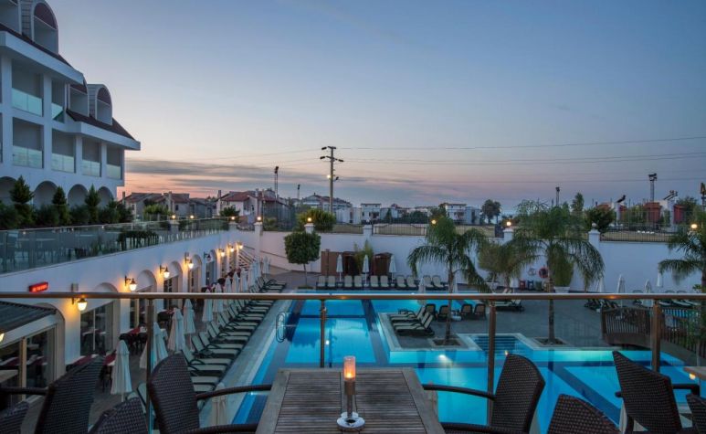 Намира се на 55 км от летище Анталия, на 60 км от центъра на Анталия, на 12 км от центъра на Сиде, на 650 м от брега на морето. Построен 2013 г.