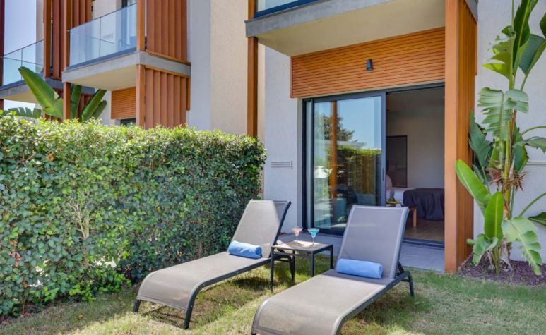 На 400 м от плажа Ortakent Yahşi. До морето се стига по тесни пътеки, минаващи през уникално красива и чиста градина.