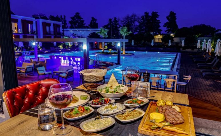 Един основен ресторант - The BABA Q Restaurant (предлага A-La-Cart меню) с уникално кулинарно изживяване с прясно приготвена здравословна храна. На територията на хотелът има и два бара : The Lounge & Bar и The Blue Bar.