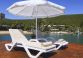 Собствен, пясъчно-чакълест със син флаг. Чадъри, шезлонги, матраци на плажа и при басейна – безплатно. Плажни кърпи - срещу депозит.