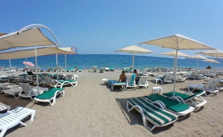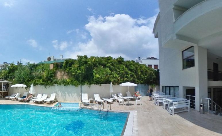 Намира се в района на Кемер, в близост. до центъра на Кемер, на 45км. от центъра на Анталия, на 55км. от летището на Анталия, на брега на морето със собствен плаж-чакъл, шезлонзи и чадъри-безплатно.