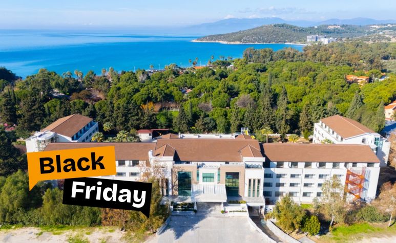 Намира се на 65 km от летище Измир, на 124 км от летище Милас, на 5 км. от центъра на Кушадасъ, на 250 м. от брега на морето. Построен на обща площ от 12 500 кв.м.