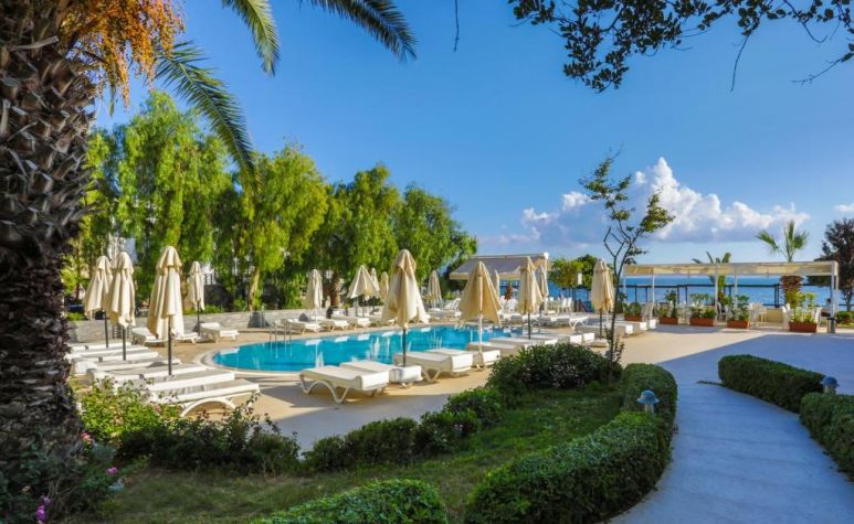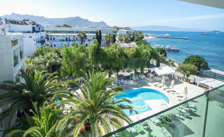 Намира се на 55 км от летище Бодрум, на 20 км от центъра на Бодрум, на 1 км от центъра на Тургутрейс, на брега на морето. Построен 2014 г., на обща площ от 5 000 м2.