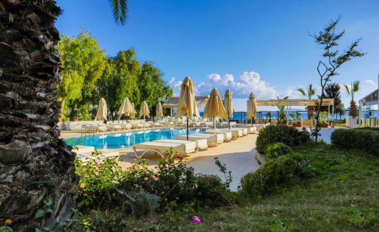 Собствен, пясъчен плаж. Чадъри и шезлонги на плажа и при басейна - безплатно.