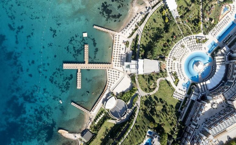 Хотелът се намира на 60 км. от летище Милас, на 25 км. от центъра на Бодрум, в района на Тургутрейс, на брега на морето с панорамна гледка към Егейско море. Разполага с обща площ от 50 000 m².