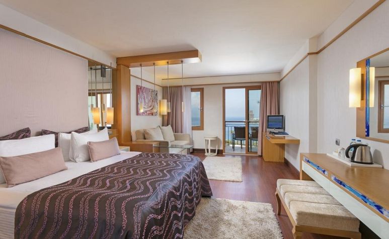 Хотелът разполага с 384 стаи, от които 152 стандартни и 120 фамилни. 95 % от всички стаи са с изглед към морето. Всички стаи са оборудвани с климатик, сателитна телевизия, телефон, баня с душ/вана, сешоар, мини бар (безплатен), сет за кафе и чай, сейф (безплатен), балкон, Wi-Fi (безплатен). Почистване на стаите - всеки ден, смяна са бельото и кърпите 3 пъти в седмицата.