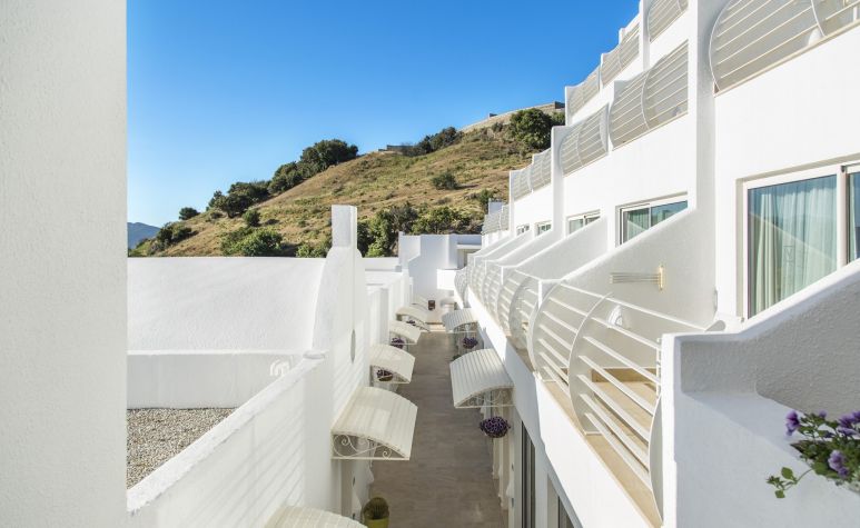 Стаи: Standard room without balcony land view (1 спалня или  2 единични легла, 1 баня, изглед суша, без тераса - 19 М²), Standard room with balcony land view (1 спалня или  2 единични легла, 1 баня, изглед суша, с тераса - 19 М²), Standard room with balcony sea view (1 спалня или  2 единични легла, 1 баня, изглед море, с тераса - 19 М²), Junior suite room sea view (1 спалня, 1 хол, 1 баня, изглед море, с тераса - 53 М²).