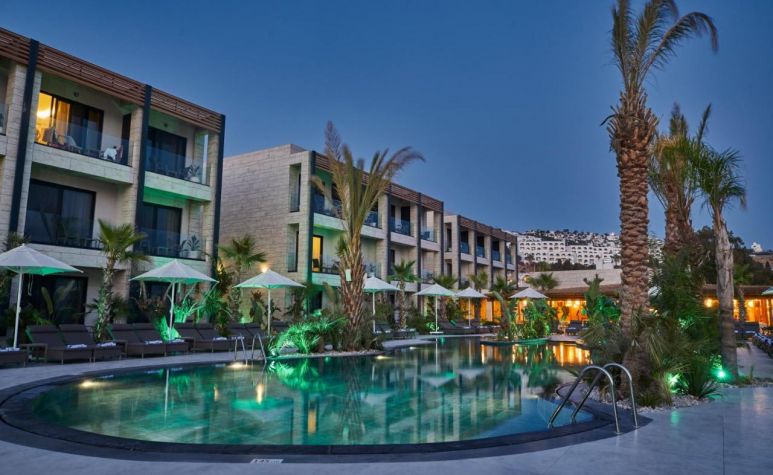 Намира се на брега на морето, в района на Тургутрейс, на 3 км от центъра на Тургутрейс, на 19 км от центъра на Бодрум и на 53 км от летище Милас. Разположен върху площ от 10.500 m². Хотелът е построен през 2022г. Изключително подходящ избор за двойки.