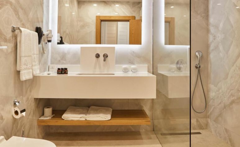 Хотелът се състои от 9 двуетажни блока. Разполага с общо 144 стаи, от които: 95 Deluxe Room (с опция за Garden View, Part of the Sea View и Sea View (29-34 m²) и 8 Family Room (63 m²). Всички стаи са оборудвани с: климатик, телефон, телевизор с плосък екран, керамичен под, сейф (безплатно), Wi-Fi (безплатно), минибар (безплатни безалкохолни напитки), баня с душ, сешоар. Почистване на стите всеки ден, смяна на спално бельо - 2 пъти седмично.