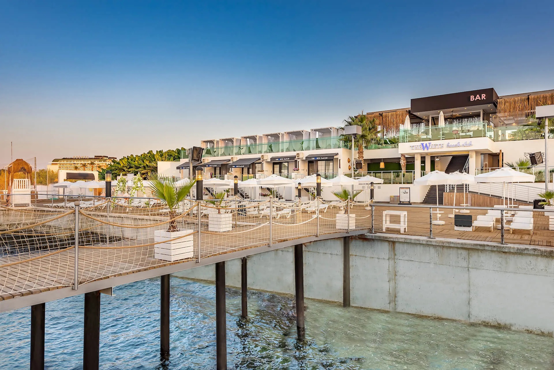 Основен ресторант, 3 а-ла-карт ресторант (световна кухня The White World Cuisine, средиземноморска кухня Terrace Taverna - безплатно, грил ресторант The Grill 16+ - срещу заплащане. Всеки ресторант изисква предварителна резервация.), кафе-бар, 4 бара, дискотека, сладкарница, 3 открити басейна (1 от които с концепция 16+) и 1 закрит басейн, 4 водни пързалки,  библиотека, кино на открито, магазини, конферентни зали, паркинг, WI-FI (в основните части на хотела), концепция за младоженци (някои услуги са платени).