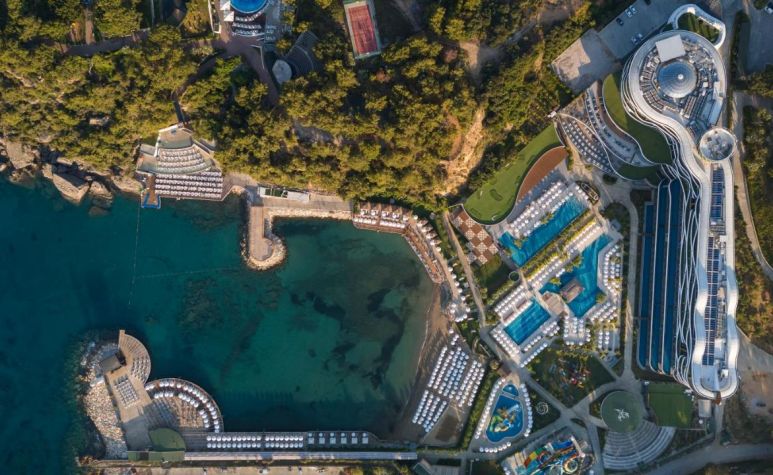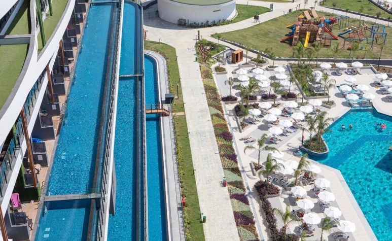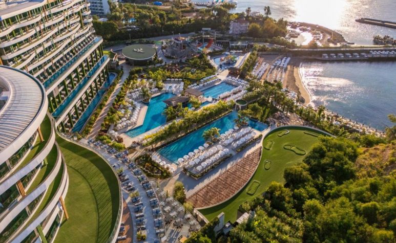 Хотелът се намира се намира на 90 км от летище Анталия, на 35 км. от Алания, на брега на морето. Построен през 2020 г. на обща площ от 30 000 кв.м.