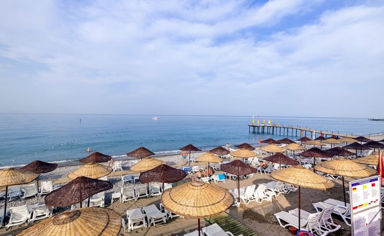 Собствен, пясъчно-чакълест плаж. Чадъри, матраци, шезлонги - на плажа и при басейна – безплатно. Плажни хавлии - платено. Шатри на плажа - платено.