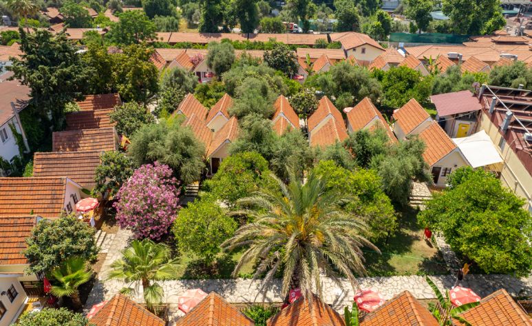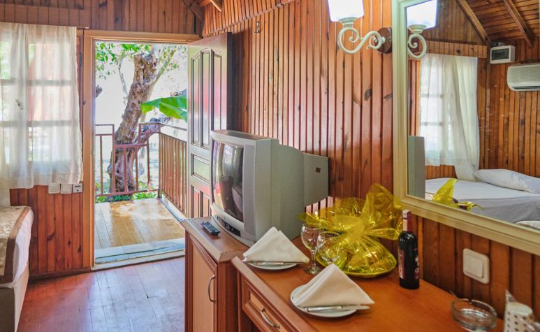 Разполага с 48 бунгала, всяко от които е снабдено с:климатик ( регулира се индивидуално), баня и тоалетна, сешоар, телефон (срещу заплащане), телевизор, мини бар (ежедневно се зарежда с вода), балкон или тераса.