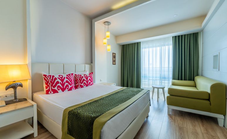 286 Standard Land view room (с изглед  суша, 20-25 м2), 258 Standard Sea view room (с изглед море, 20-25 м2), 21 Standard Large room (с изглед  суша, 30 м2), 34 Family room (2 спални, 1 баня, 55-60 м2), 1 King suite room (2 спални, 2 бани, джакузи - 90 м2), 1 Diamond room (1 голяма спалня, 2 дивана и маса, 1 баня - 60 м2),