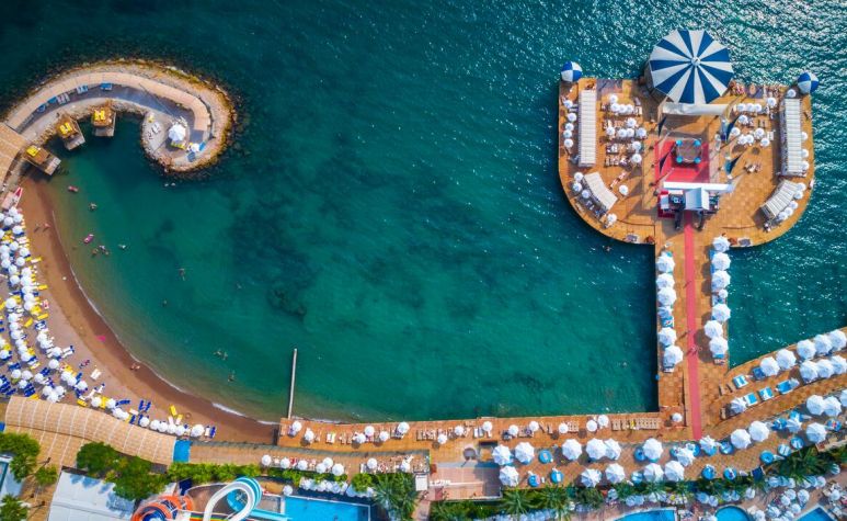 Намира се на 90 км от летище Анталия, на 100 км от центъра на Анталия, на 30 км от центъра на Алания, на брега на морето. Построен 2009 г., на обща площ от 18 000 м2. Реновиран 2024 г. (общи площи).