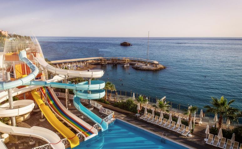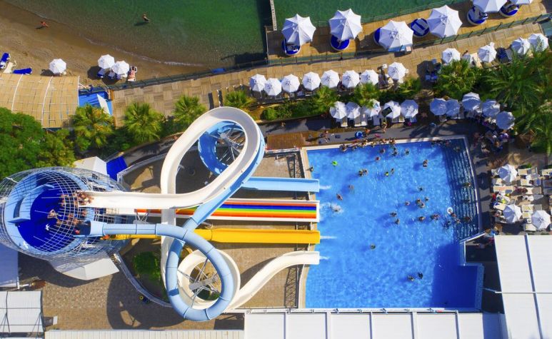 Основен ресторант, 2 снек ресторанта, сладкарница, 6 бара (1 от които 24 часа), открит и закрит басейн, водни пързалки, амфитеатър, СПА център, конферетнта зала.