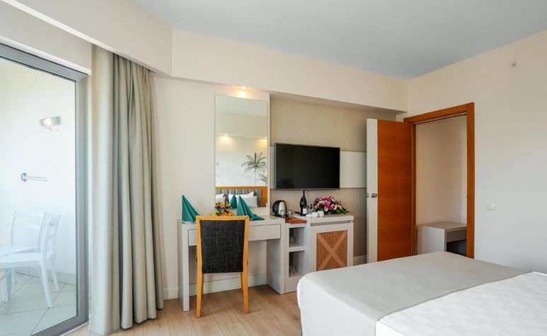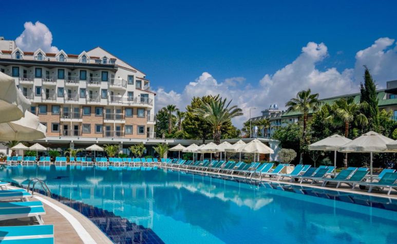 Намира се на 55 км от летище Анталия, на 65 км от центъра на Анталия, на 15 км от центъра на Сиде, на 300 м брега на морето. Построен 2004 г., на обща площ от 10 000 м2. Реновиран частично 2024/2025 г.
