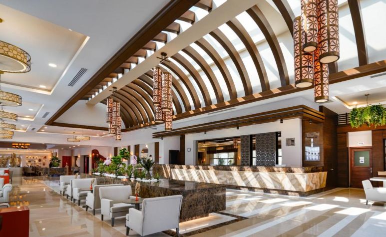 Основен ресторант, 2 а-ла-карт ресторанта (рибен, азиатски – 1 безплатно посещение на 1 от ресторантите при минимум 5 нощувки, с предварителна резервация), снек ресторант на плажа, сладкарница, 4 бара, дискотека, 3 открити басейна, 1 закрит басейн (отопляем през определение от хотела периоди), 2 водни пързалки, СПА център, магазини, 1 конферентна зала.