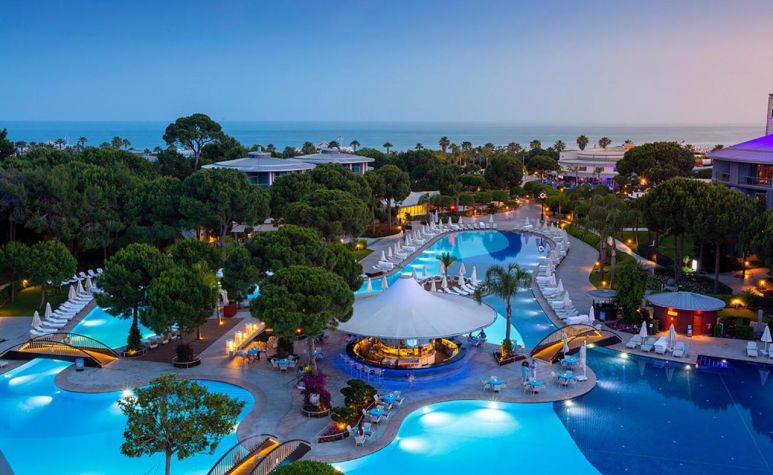 Хотелът се намира на 27 км от летище Анталия, на 35 км от центъра на Анталия, в района на Белек, на брега на морето. Построен през 2006 г. с обща площ от 120 000 м2, последно реновиран през 2013 г.
