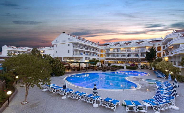 Хотелът е разположен на 55 км от летището в гр. Анталия, на 600 м от центъра на Кемер, на 300 м през пътя от плажа.Построен през 2003 г., с обща площ 14 000 м2, последно е реновиран през 2015 г.
