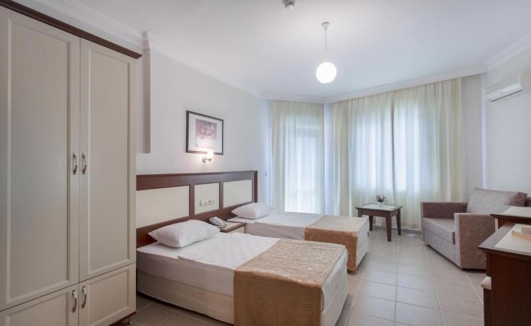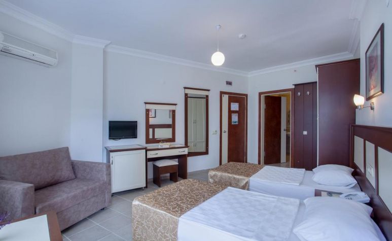 Намира се на 135 км. от летище Анталия, на 140 км. от центъра на Анталия, на 3 км. от центъра на Алания, на 150 м. от брега на морето, на 4.5 км. от известния плаж Клеопатра. Построен през 2019 г., с обща площ от 1500 м2. Хотела се намира на 4 км от пещера Дамлаташ и на 5 км от замък Алания.