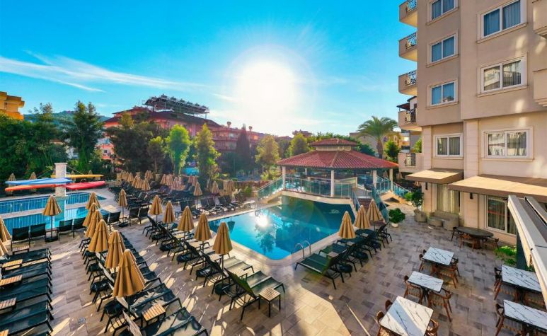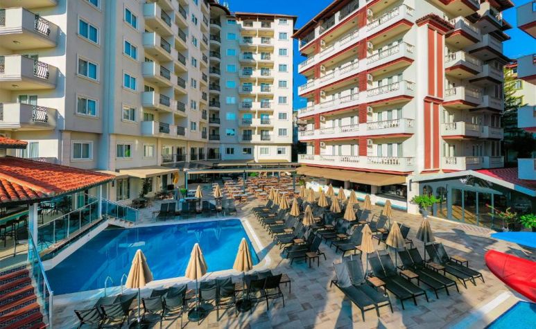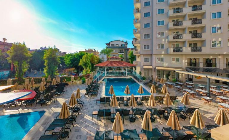 Намира се на 130 км от летище Анталия, на 500 м от центъра на Алания, на 2 км от брега на морето и известния плаж Kleopatra Beach. Построен 1995 г., на обща площ от 8 000 м2. Частично реновиран 2026 г.