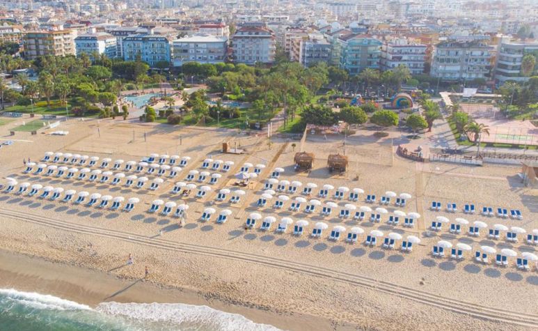 Градски, на 2 км от хотела, пясъчен. Безплатен шатъл до плажа (в определен часови диапазон). Чадъри и шезлонги при басейна – безплатно, на плажа – срещу заплащане.