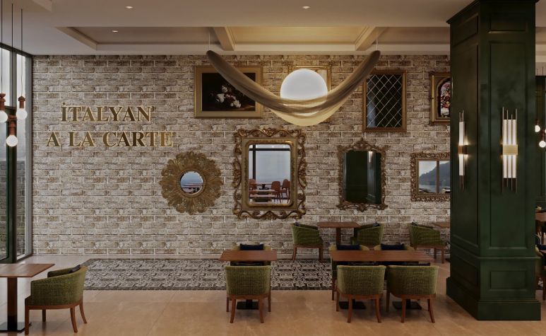 Основен ресторант, 2 а ла карт ресторанта, снек бар, 6 бара (1 от тях - срещу заплащане), сладкарница, 2 басейна (1 от тях инфинити), СПА център, фитнес, 5 конферентни зали.