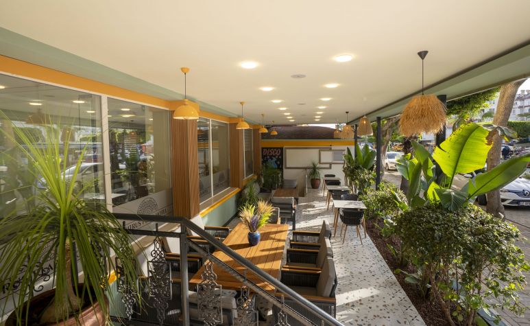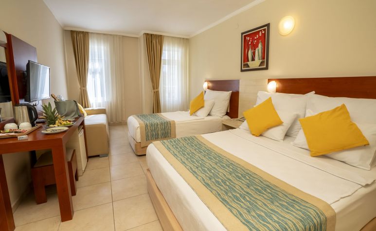 Намира се на 130 км от летище Анталия, на 140 км от центъра на Анталия, на 4 км от центъра на Алания, на 150 м от брега на морето. Построен 1998 г., частично реновиран 2025 г.