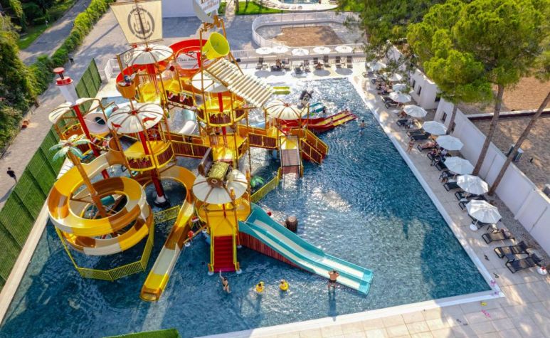 За децата: детски и бебе бюфет в основния ресторант, 1 открит и 1 закрит детски басейн, аквапарк с 8 водни пързалки за деца, мини клуб (4-12 г), мини диско, детска анимация, детска количка (с депозит).