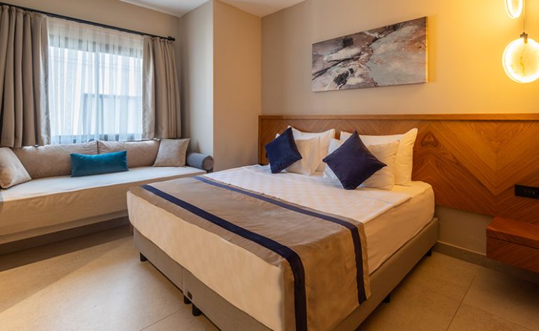 Всички стаи са оборудвани с климатик, телевизор, телефон, баня с душ, сешоар, сет за чай/кафе, минибар (безплатен), сейф (безплатен), балкон.