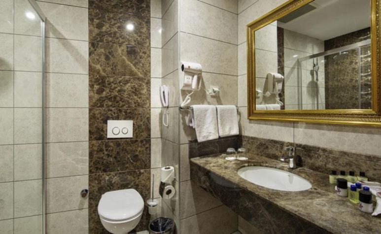 Всички стаи са оборудвани със собствен санитарен възел, климатик с централно регулиране, LCD телевизор с радиоприемник, телефон, баня с душ, сешоар, минибар, електронен сейф, балкон. Подово покритие – паркет.