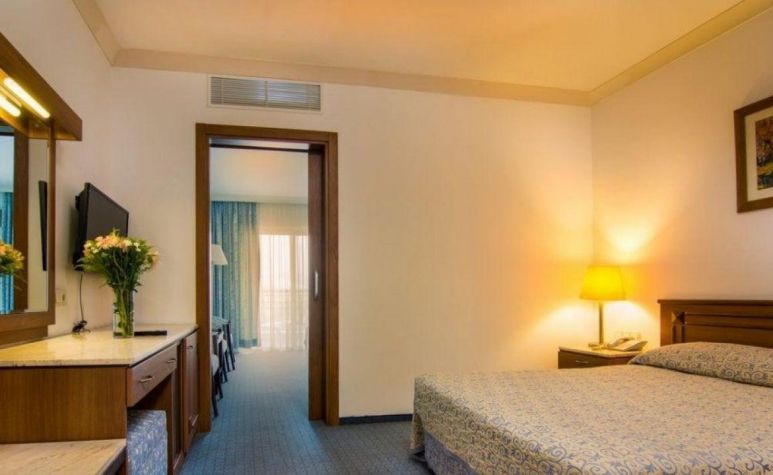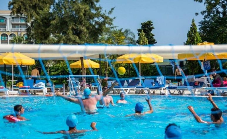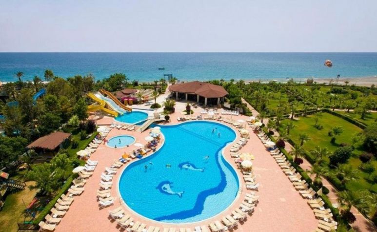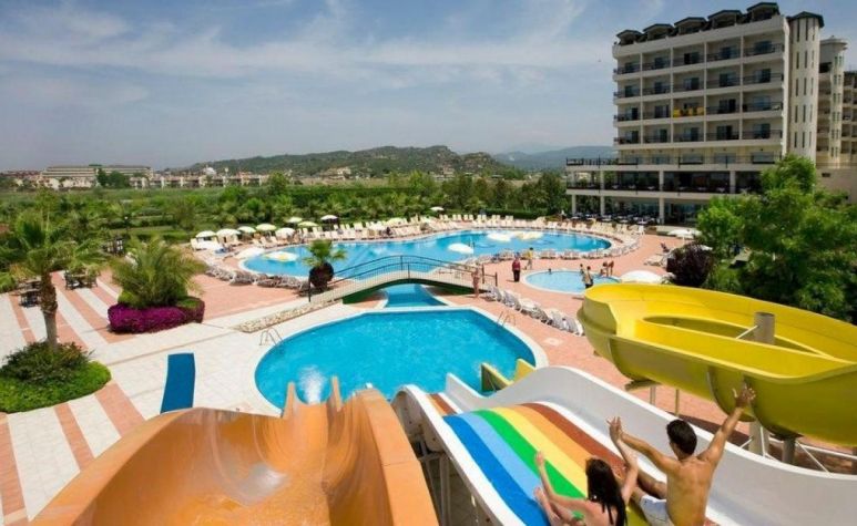 2 басейна с пързалки, 2 тенис корта, SPA център със закрит басейн, турска баня и сауна, фитнес център, зала за игри, магазини, фризьорски салон, наргиле кафене, конферентни зали, безжичен интернет в лоби.