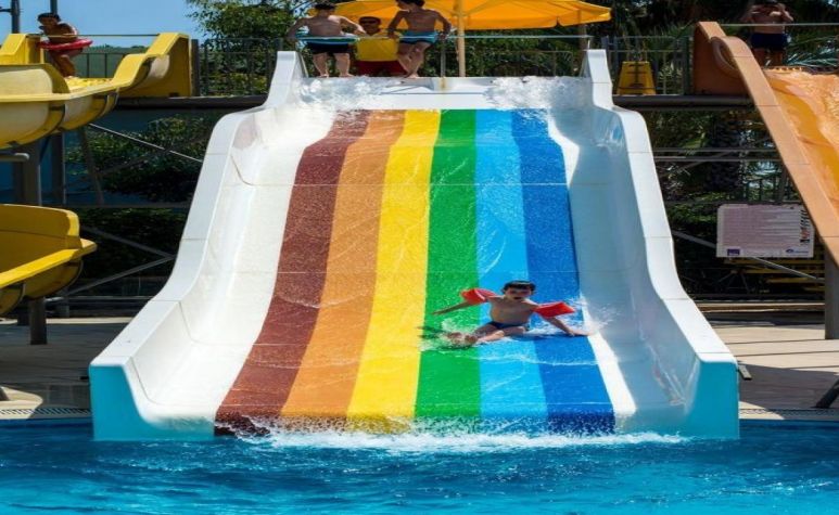 Има три външни басейна, два детски басейна и един вътрешен с три пързалки.