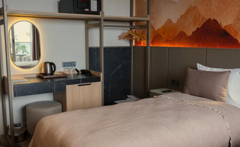 Намира се на 120 км от летище Анталия,  на 1,5 км от центъра на Алания, на 50 м от брега на морето. Построен 2001 г., реновиран 2024 г.