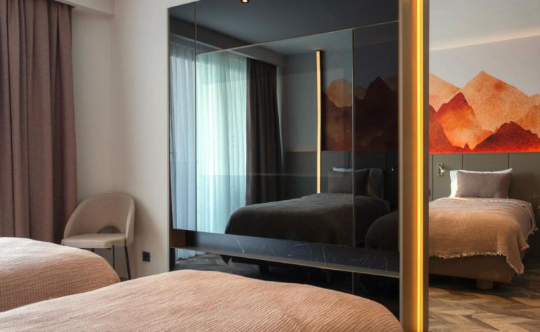 Всички стаи са оборудвани с климатик, телевизор, телефон (платен), баня с душ, сешоар, сет за чай/кафе, минибар (ежедневно зареждане с мин. вода - безплатно), сейф (платен), балкон.