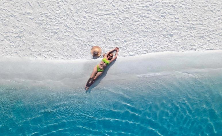Собствен, пясъчно-чакълест, 350 м дълга плажна ивица. Чадъри, шезлонги и матраци на плажа и при басейните - безплатно, Плажни кърпи - безплатно. Кабани - срещу заплащане.