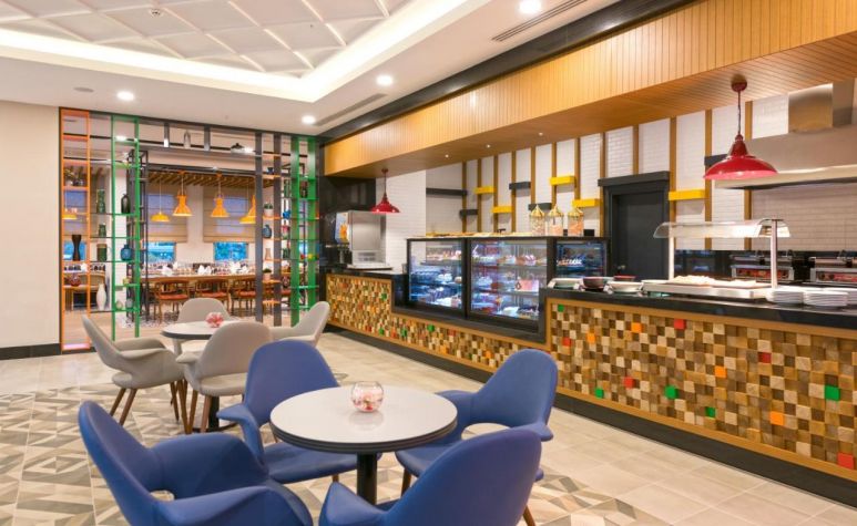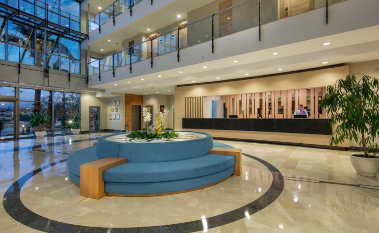 Оснорен ресторант, външен басейн, 3 пързалки, вътрешен басейн, 6 бара: лоби бар, бар до басейна и на плажа, тераса бар, дискотека и зимен бар, анимация, вечерни програми, различни програми с игри, амфитеатър, 2 конферентни зали. За децата: детски басейн, мини клуб, детски кът, детско меню.