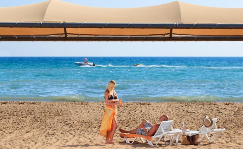 Собствен пясъчен плаж на 200 м, шезлонги, чадъри и плажни кърпи безплатни.